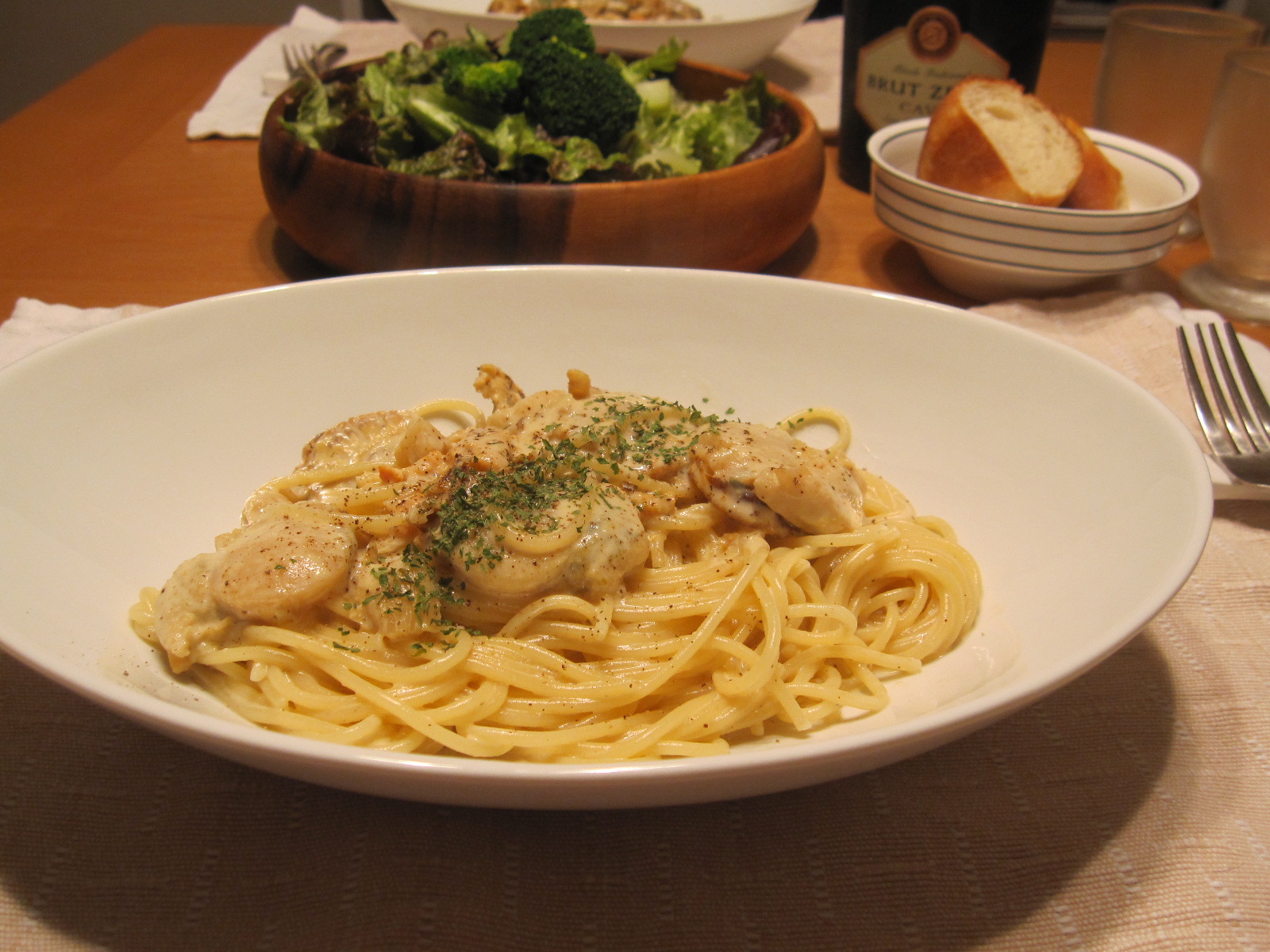 帆立の肝をつぶしてコクUP。青海苔とも好相性。