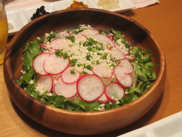 そしてお造りについていた大根のツマは洗ってサラダに。