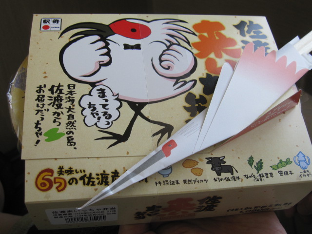 佐渡へは行っていませんが、なぜか佐渡のトキモチーフの駅弁。