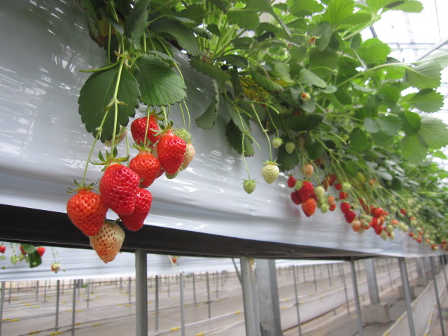 ビニールハウスに入った途端に広がるいちごの甘い香り。
