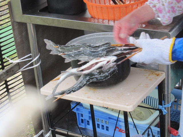 おばちゃんたちが素早くさばいてくれて、塩ふってくれて、