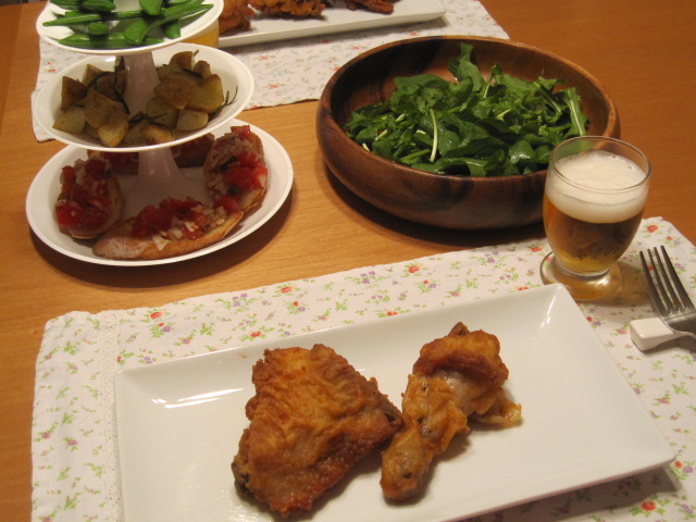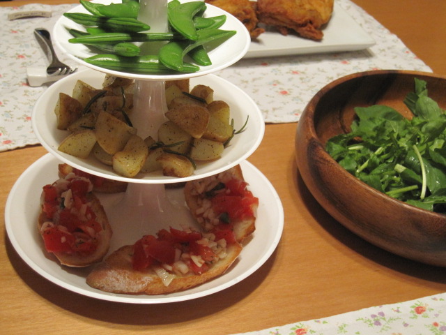 ブルスケッタ・ローズマリーポテト・スナップエンドウ