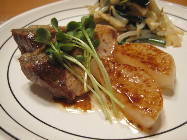 小さめの鰤の切り身と大根はソテーしてバター醤油ソースで。