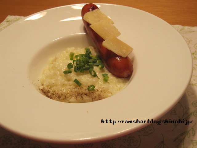 ジューシーなソーセージとチーズリゾットの相性は◎ですぜ、奥さん。