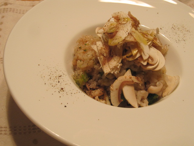 リゾットの上にはやっぱりマッシュルームスライスがのってます。
