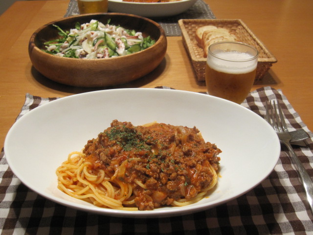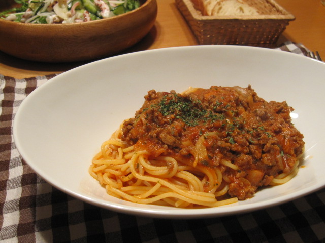 タコライスにしようと思っていた挽肉をミートソースにしてくれました。