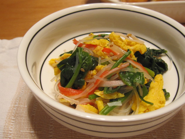 春雨・ほうれん草・卵・カニカマでサラダ。