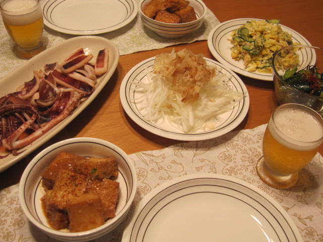 で、そのイカが届いたので、イカメインの夜ごはん。