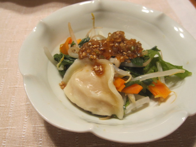 買って冷凍庫に入れて、すっかり忘れていた水餃子。