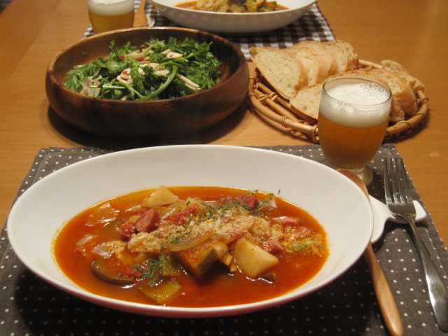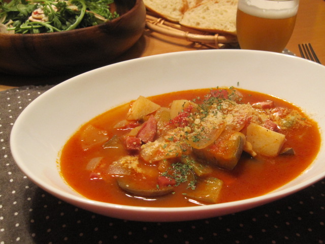 茄子・ピーマン・じゃがいも・玉葱・トマトとトマトピューレ。