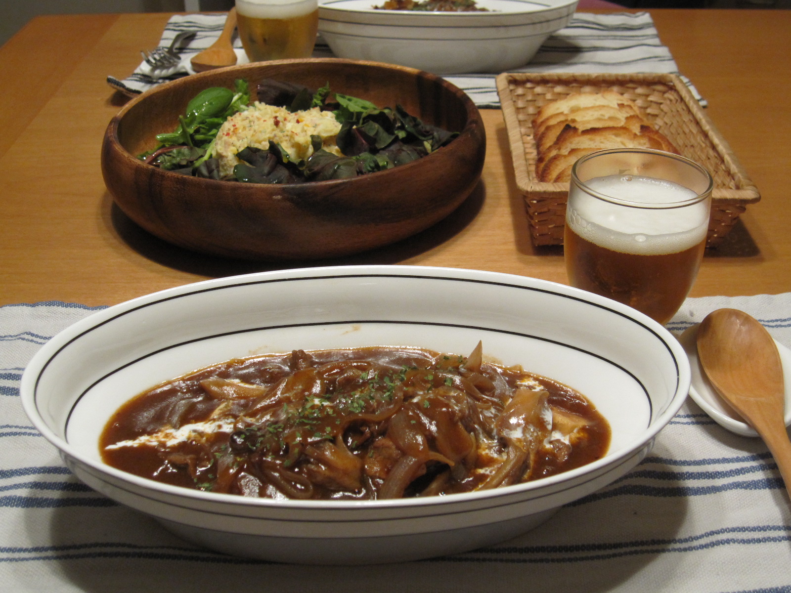 保険で買っておいたペラペラのお徳用牛肉でシチュー。