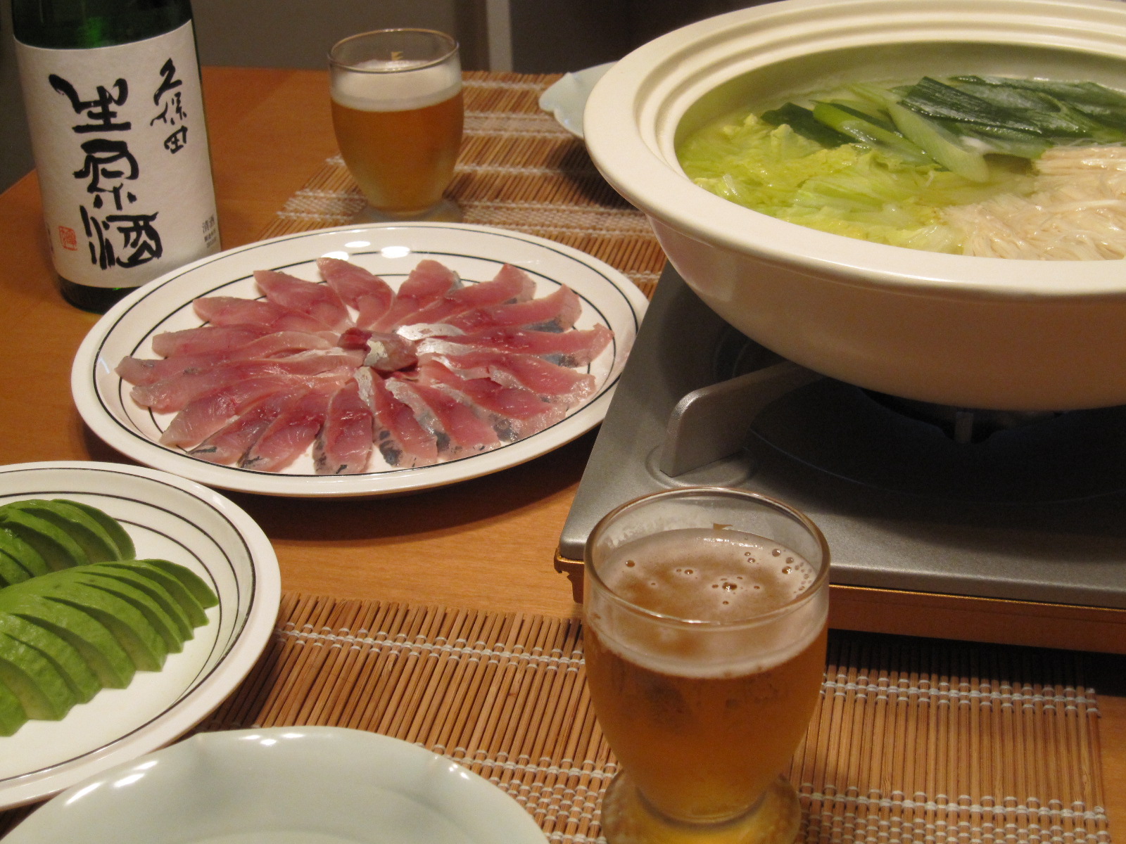 白菜・葱・エノキダケと共に、ポン酢で食べました。