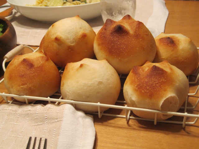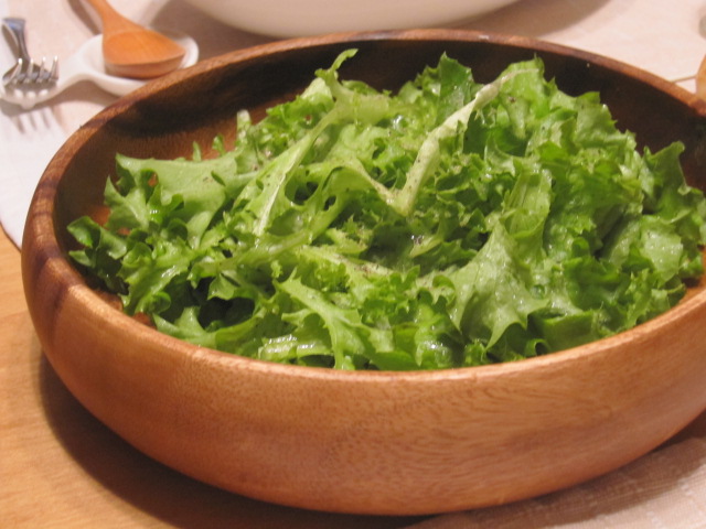葉っぱをちぎっただけのサラダと久しぶりに焼いたパン。