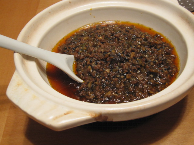 坦々タレは挽肉と葱・生姜・ニンニクたっぷり。