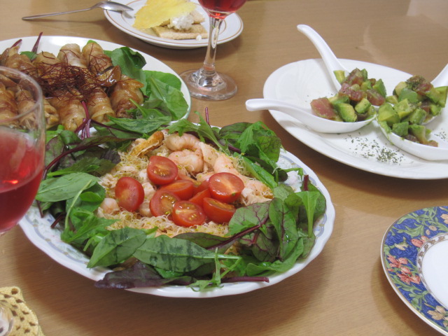 ロゼのスパークリングワインと共に、お料理が並んでました。