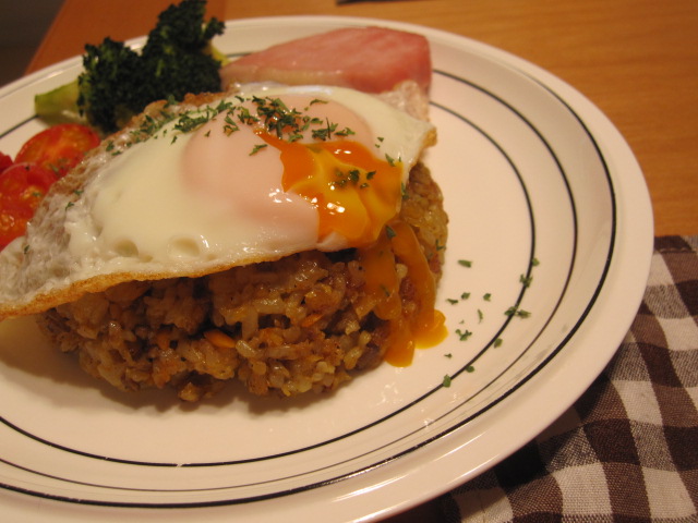 ちなみにこの半熟目玉焼きは彼の分です。