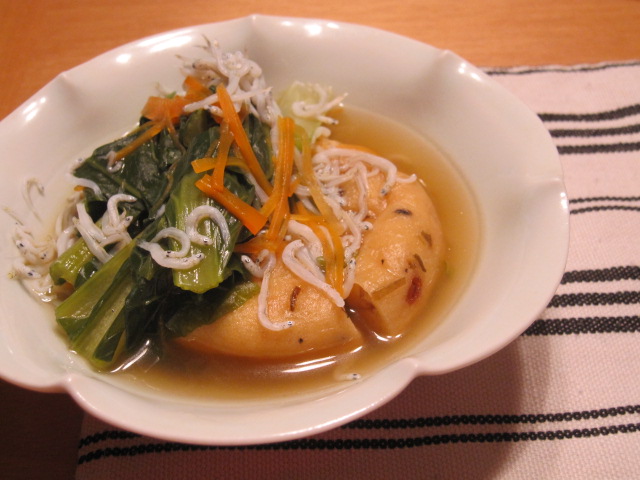 がんもと小松菜は白出汁で煮ました。