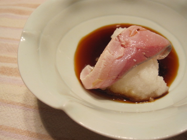 薄造りにしてしゃぶしゃぶ、大根おろしとポン酢で食べました。