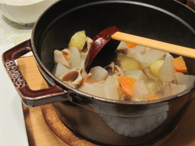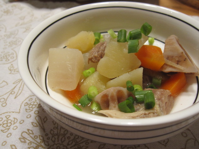 牛筋煮込みには大根・人参・じゃがいも・蓮根・牛蒡を入れました。