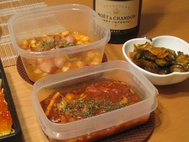 数日前に作ったひよこ豆のトマト煮とイカパスタの時のソースの残り。