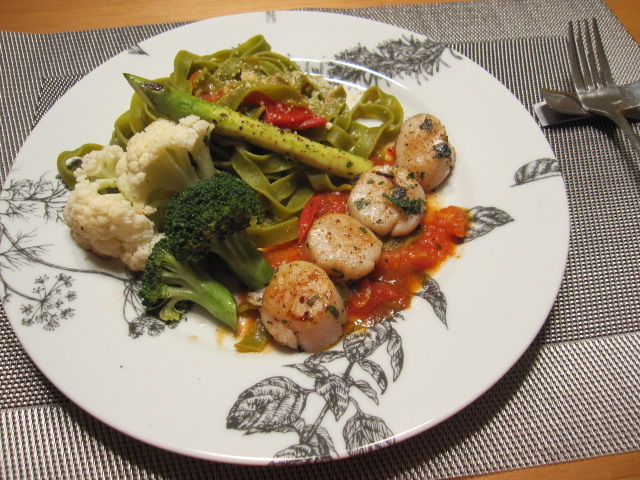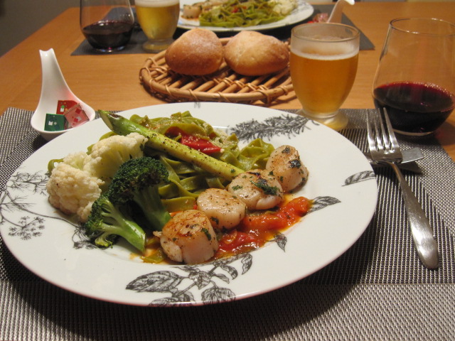 ホタテのトマトクリームパスタの予定がこんな風になっちゃいました。