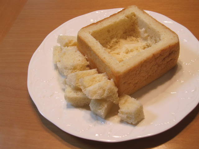 が、ちょうど角食パンを焼いたので、それを器にしてみました。