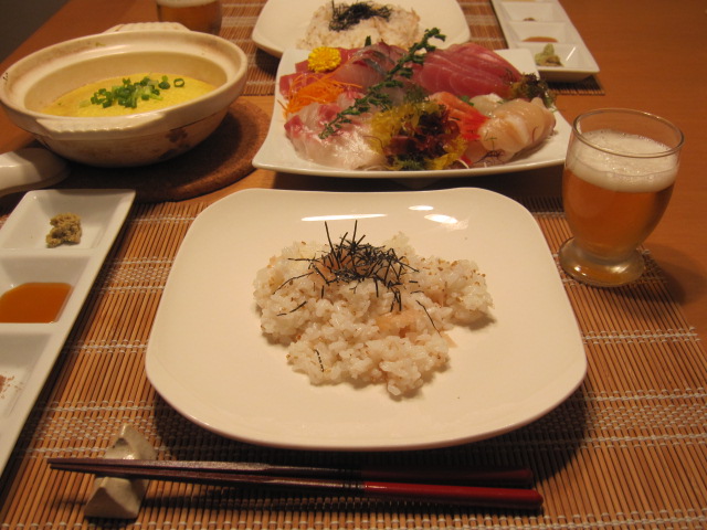 お刺身うまいー!何だか贅沢な気分ー!!(ザ小市民)