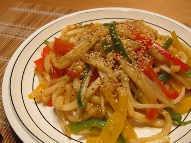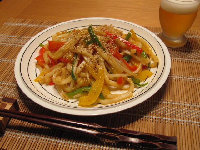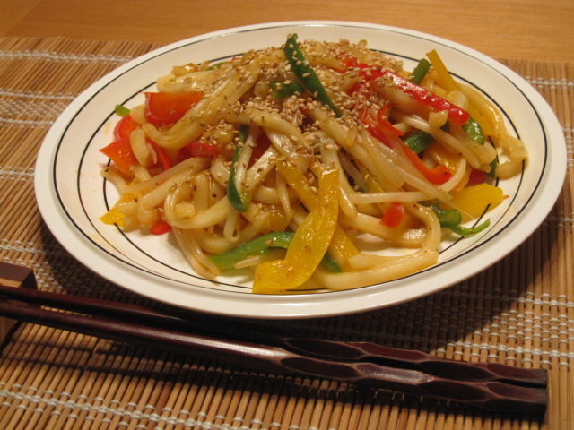 先ずは簡単に焼きうどんを作ってみました。
