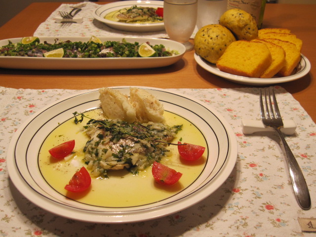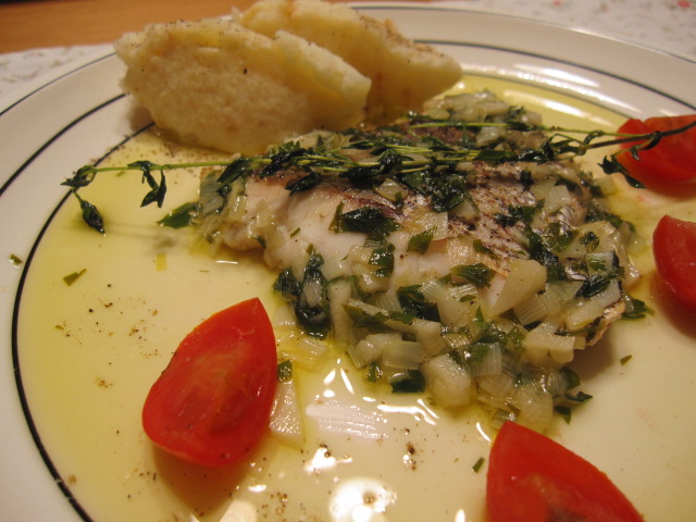 タイムを中心にハーブ数種とバターでソースを作っていた模様。