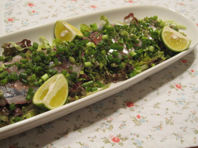 サニーレタスと鯵と万能葱。
