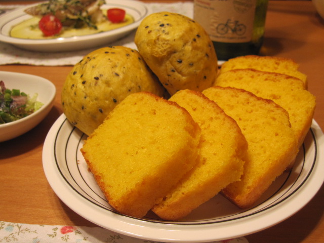 冷凍しておいた最後のコーンブレッドと南瓜パン。