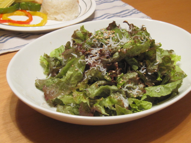 サラダはサニーレタスにごま油、しらす。