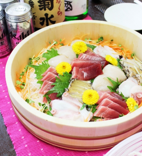 おかめ板長の刺身盛り。