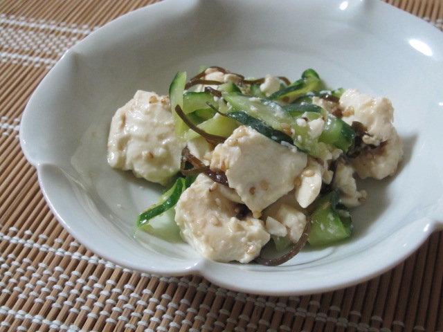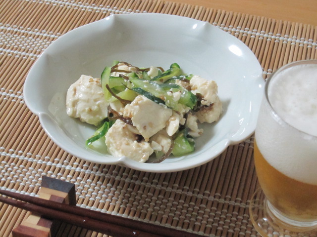 水切りしてちょっとお塩をして塩豆腐風にしてから和えました。