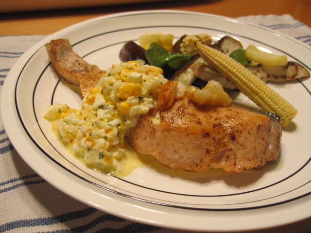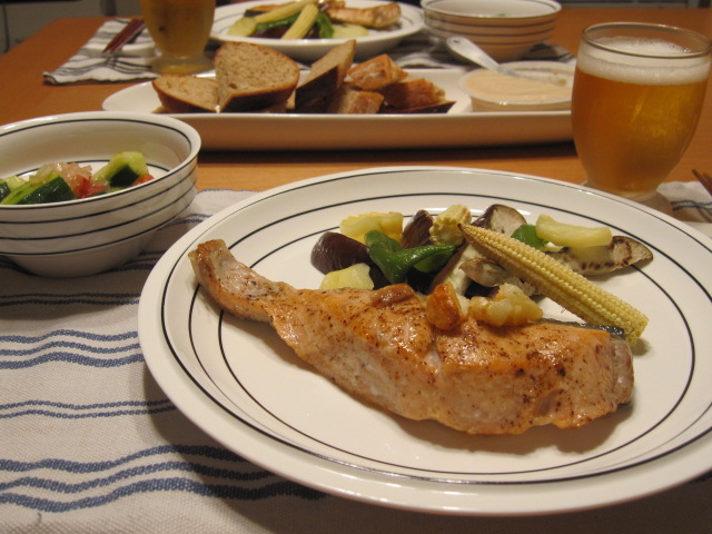 生鮭は塩・胡椒してガーリックソテーにしました。