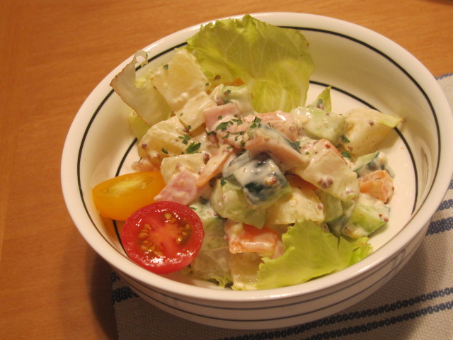 じゃがいも・人参・胡瓜・チコリ・ハム・クリームチーズ入り。