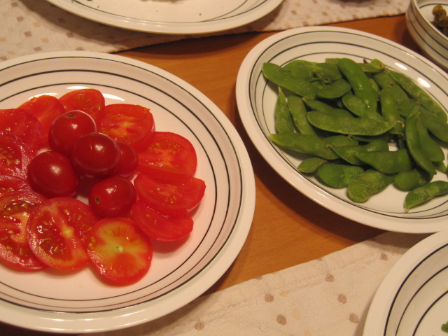 トマト2種と枝豆、自家製きゅーちゃん最高。