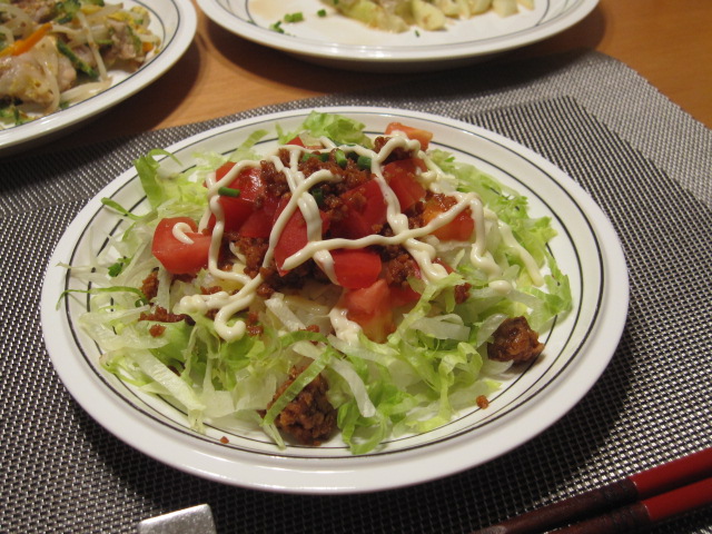 タコライスはいつもより具材を減らしてシンプルバージョン。