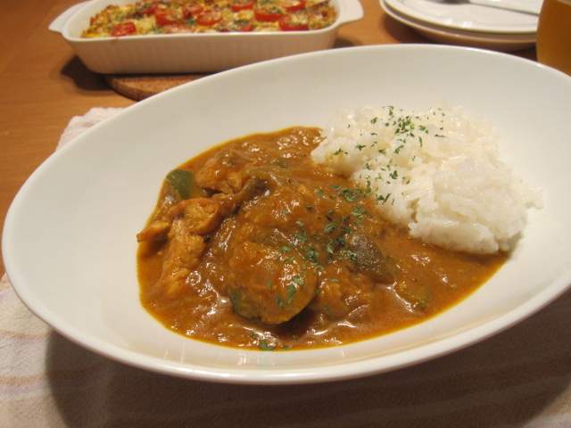 茄子とズッキーニ入りのカレー、野菜は見事に溶けました。