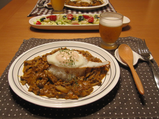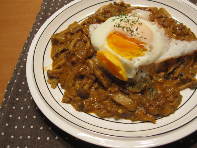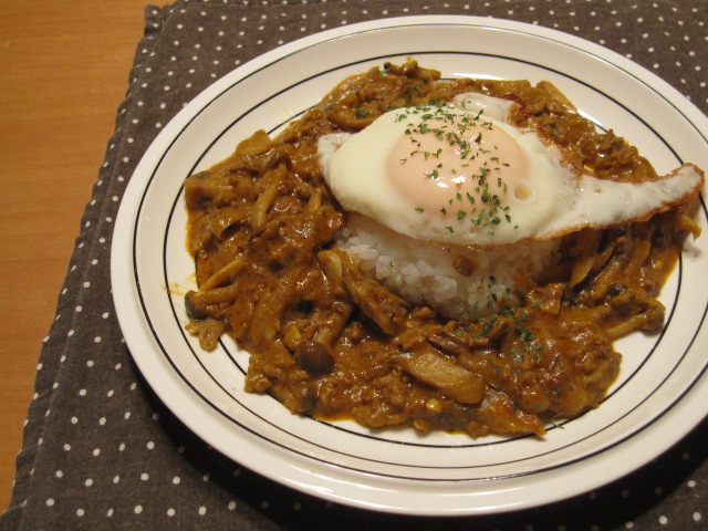 エリンギ・舞茸・しめじ・マッシュルームがたっぷりのカレー。