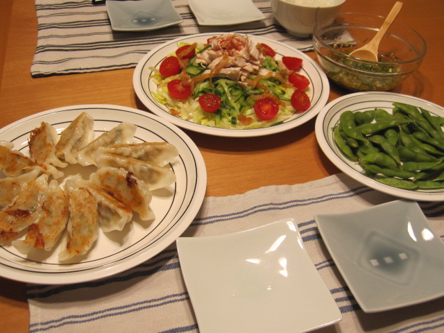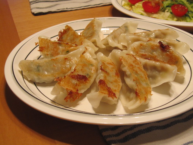已む無く冷凍餃子。