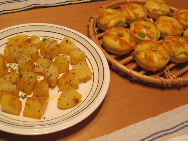 何となく気分で作ったポテトと、ビスケット代わりのケークサレ。