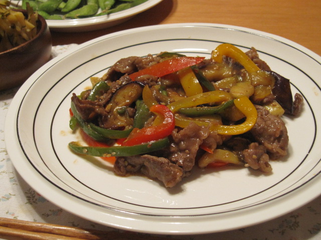 茄子・ピーマン・赤パプリカ・黄パプリカ入り。