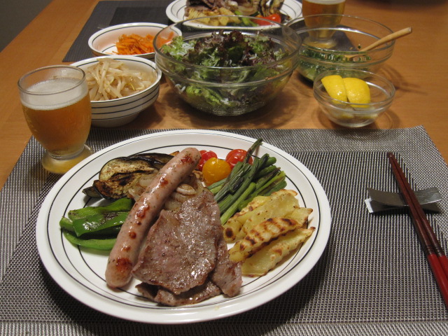ホットプレートで焼肉、と思いましたが、暑いので、