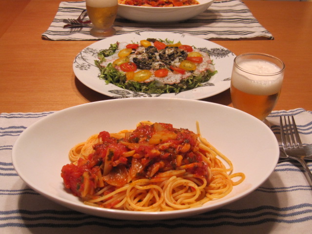 冷凍庫から発掘したタコをフル活用した夜ごはん。