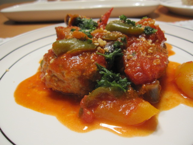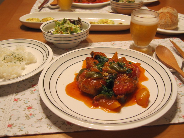 テレビで見て食べたくなったので煮込みハンバーグ。
