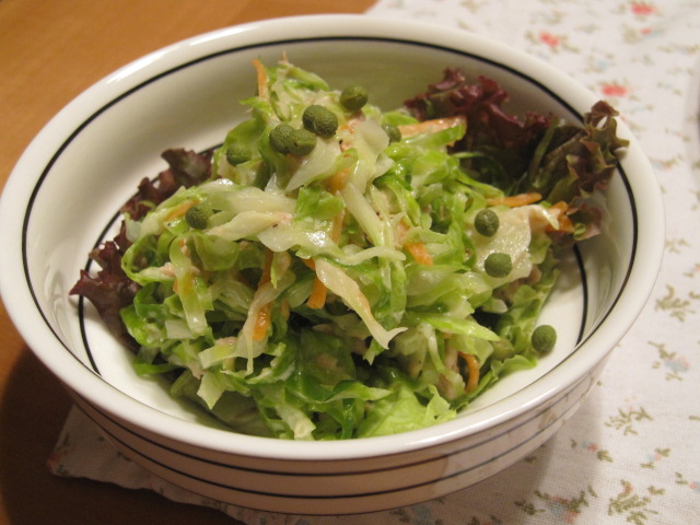 キャベツと人参の千切りにツナを混ぜ混ぜ。