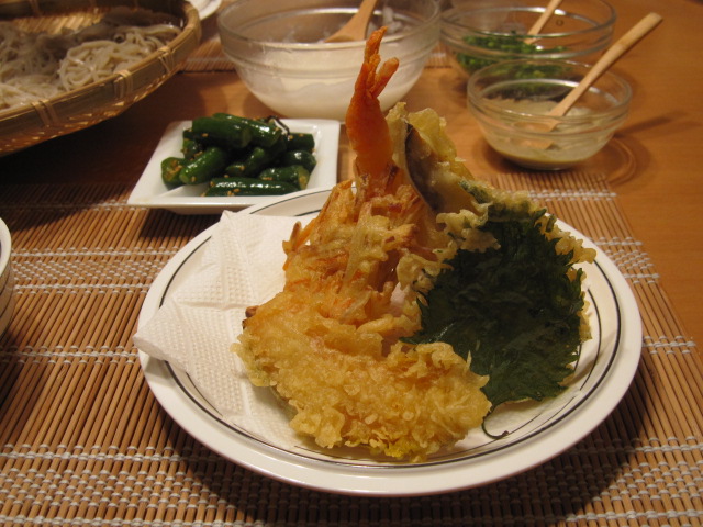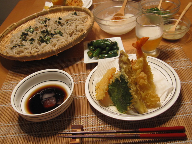 胡瓜をたたいてお蕎麦を茹でただけー。