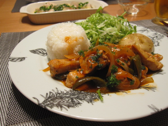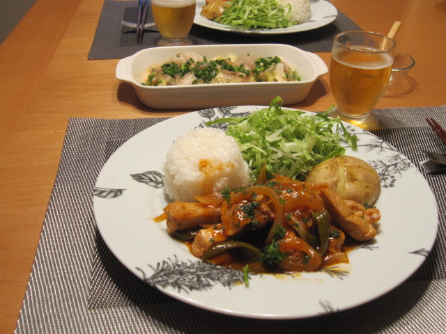 チキンマリネ・ソテーの晩ごはん(←の記事中に茄子のレンジ浸し有)