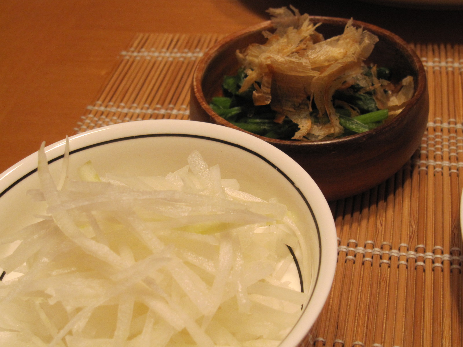 大根サラダ・ほうれん草のお浸し